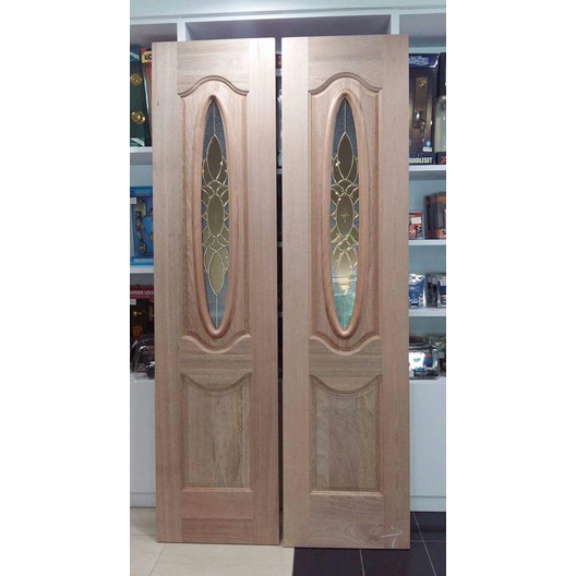 Pintu Kayu Cermin Depan Rumah Full Solid Wooden Door Tempered Glass Harga Kilang Tidak Termasuk Cat Syelek Shopee Malaysia